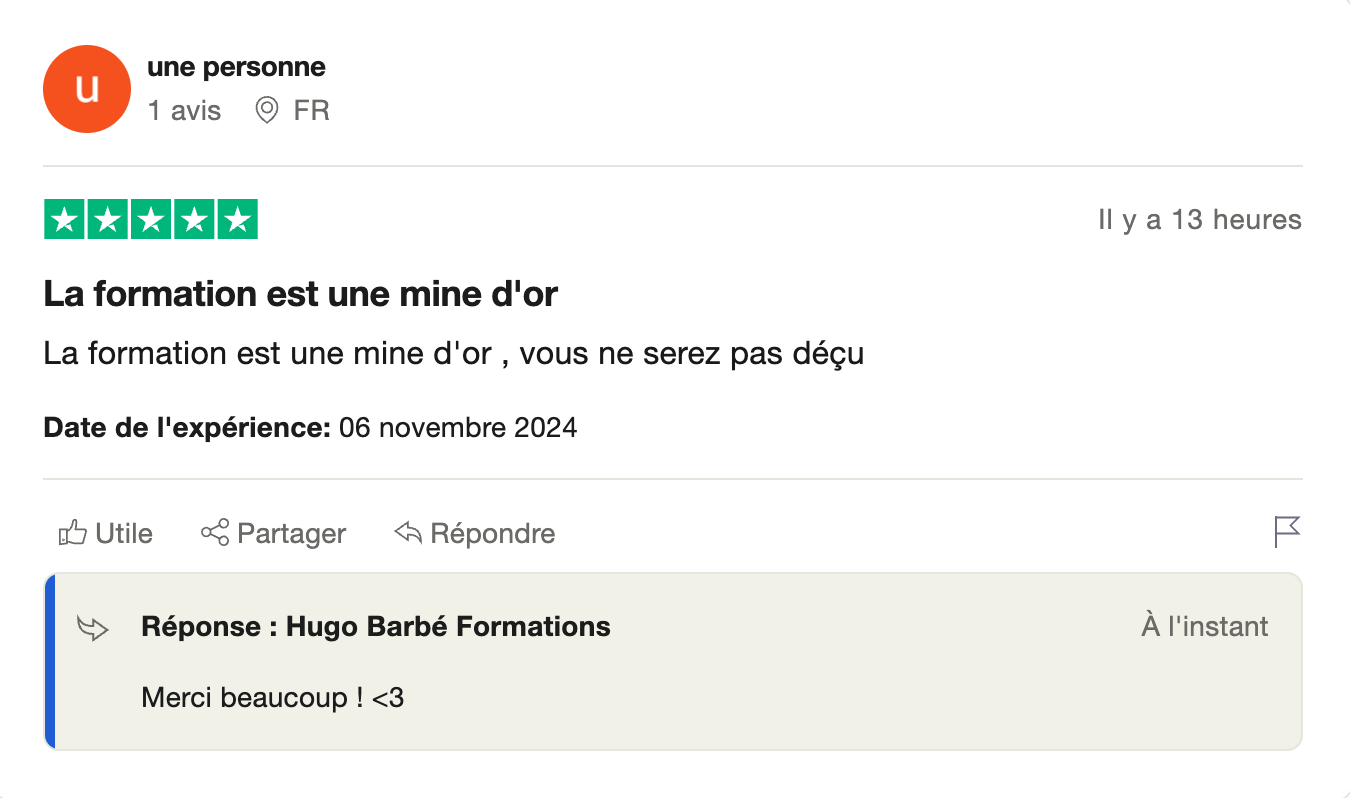 Si tu es intéressé, envoie moi un mail à hugobarbeformations@gmail.com