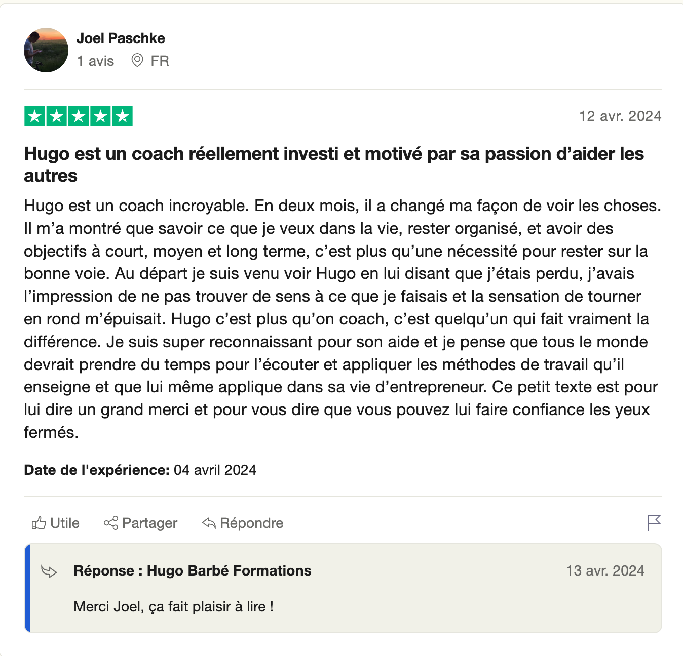 Aujourd’hui c'est le tour du business, tout ce que je sais, tout ce que j'ai appris ces 3 dernières années, je te le partage. C'est le résultat de centaines d'heures de tests, de formations, d'échecs et finalement, de réussite.
