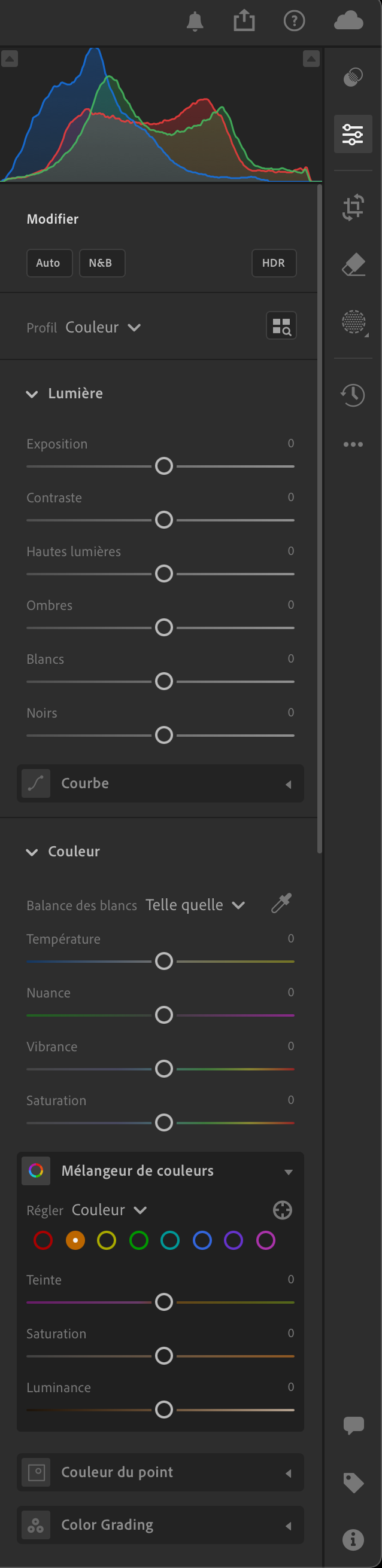 Ou tu essayes jour après jour de l'utiliser, mais tu te contentes d'utiliser les paramètres de la lumière : exposition, ombre, blancs, noir, tons sombres & clairs, et ça s'arrête là.