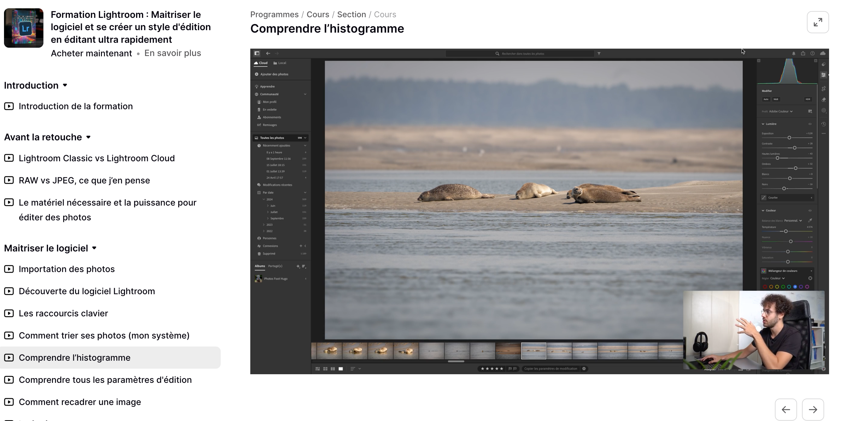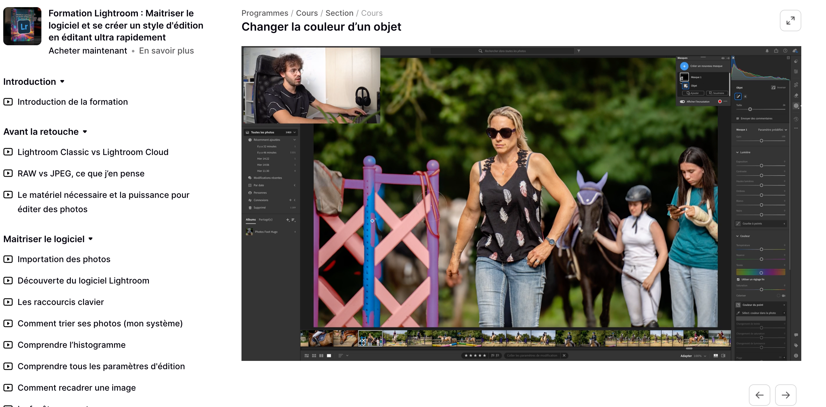 Dans quelques minutes tu vas avoir accès à l'ensemble du contenu de cette formation, plusieurs heures de vidéos qui vont te permettre de développer tes compétences sur Lightroom. ✔️