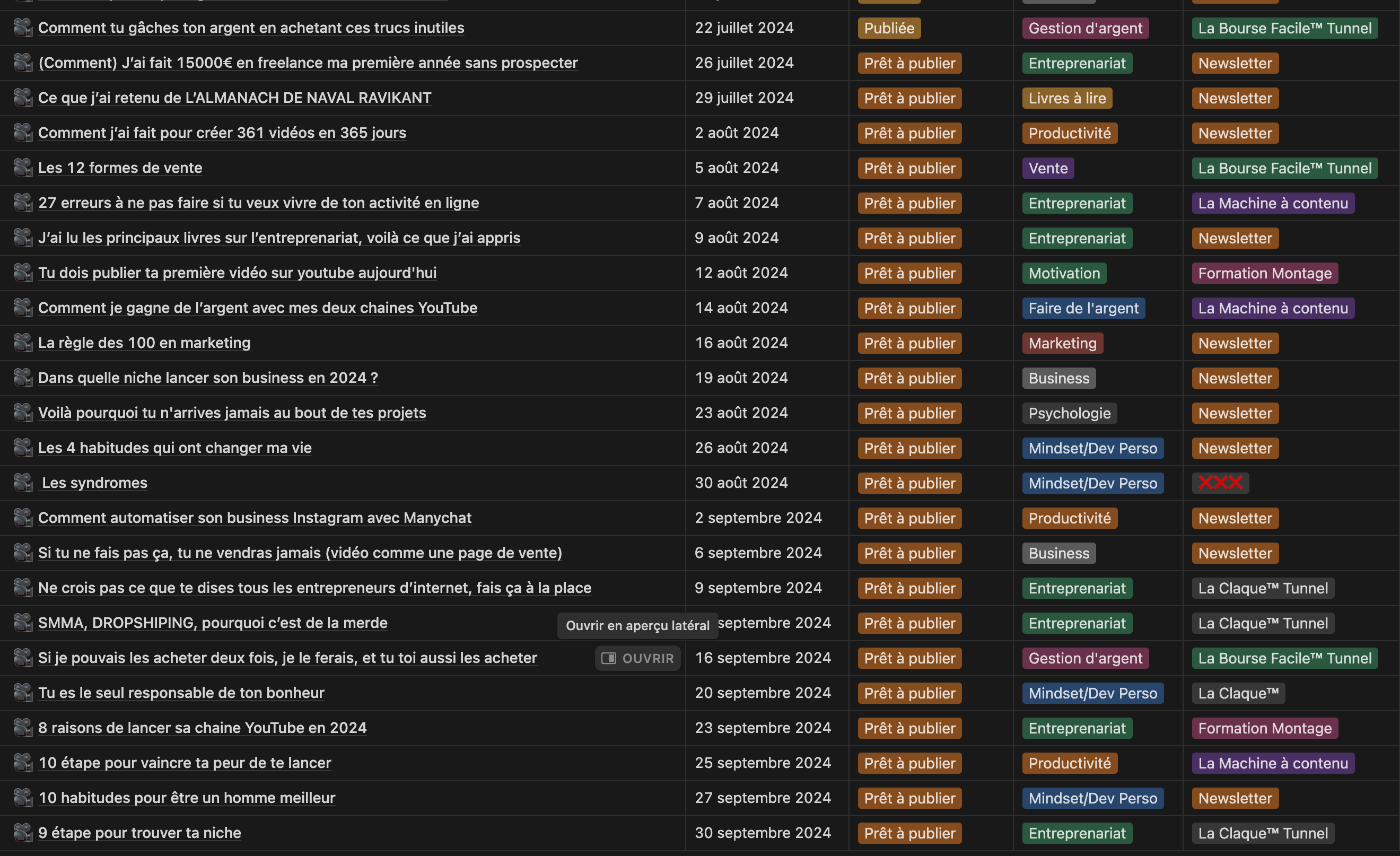 Ce que tu vois, c'est mon calendrier de publication, une vidéo par jours en moins d'une heure, je prends juste tellement d'avance que je peux me consacrer à d'autres projets pendant les deux prochains mois.